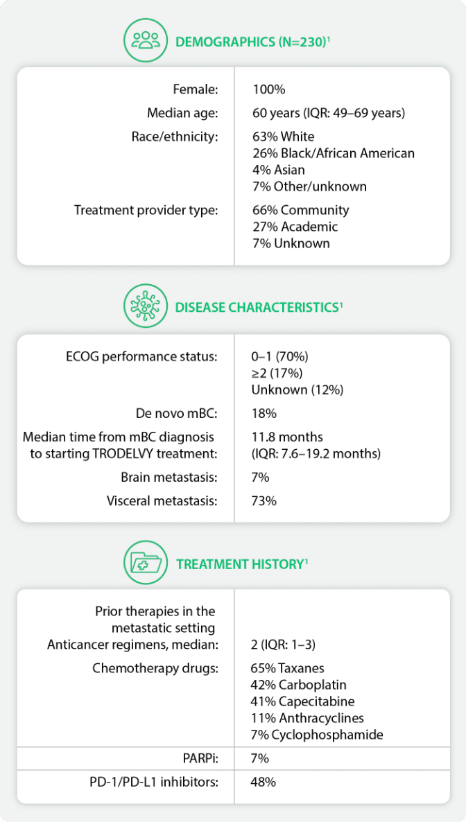 A retrospective, observational cohort study assessed real-world clinical outcomes in patients with mTNBC treated with TRODELVY as 2L and later1