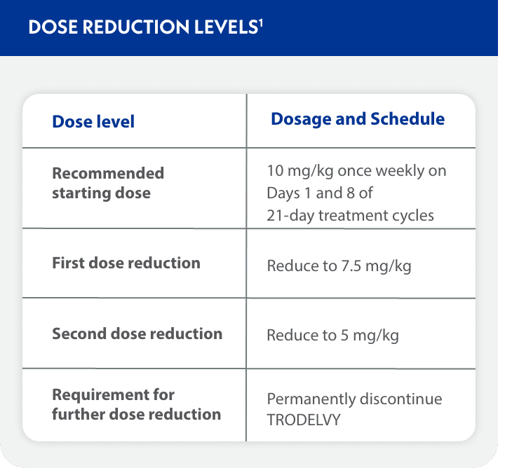 References: 1. TRODELVY. Prescribing Information. Gilead Sciences, Inc.; March 2025. 2. Rugo HS, Tolaney SM, Loirat D, et al. Safety analyses from the phase 3 ASCENT trial of sacituzumab govitecan in metastatic triple-negative breast cancer. NPJ Breast Cancer. 2022;8(1):98.